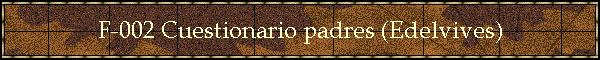 CUESTIONARIO PARA LOS PADRES Con el fin de ayudar a su hijo en el aprendizaje, les rogamos respondan con sinceridad a las siguientes preguntas. Por supuesto, los datos son confidenciales. DATOS PERSONALES DEL ALUMNO 1. Apellidos: ...................................................................Nombre:.......................... 2. Curso:............ DATOS FAMILIARES 3. Nombre y apellidos de la madre.................................................................... Profesión 4. Nombre y apellidos de] padre...................................................................... Profesión 5. Teléfonos de contacto (domicilio........................, trabajo..............................) 6. ¿Qué personas ejercen influencia sobre la educación de su hijo (padre, madre, hermanos mayores )? ........................................................................................................................................... 7. ¿Ha existido algún acontecimiento que pueda haber ejercido influencia importante en la vida de su hijo? (enfermedades, muerte de un familiar, ausencia del padre ...) Si ha existido indique, si lo considera conveniente, cuál ...........................................................................................................................................